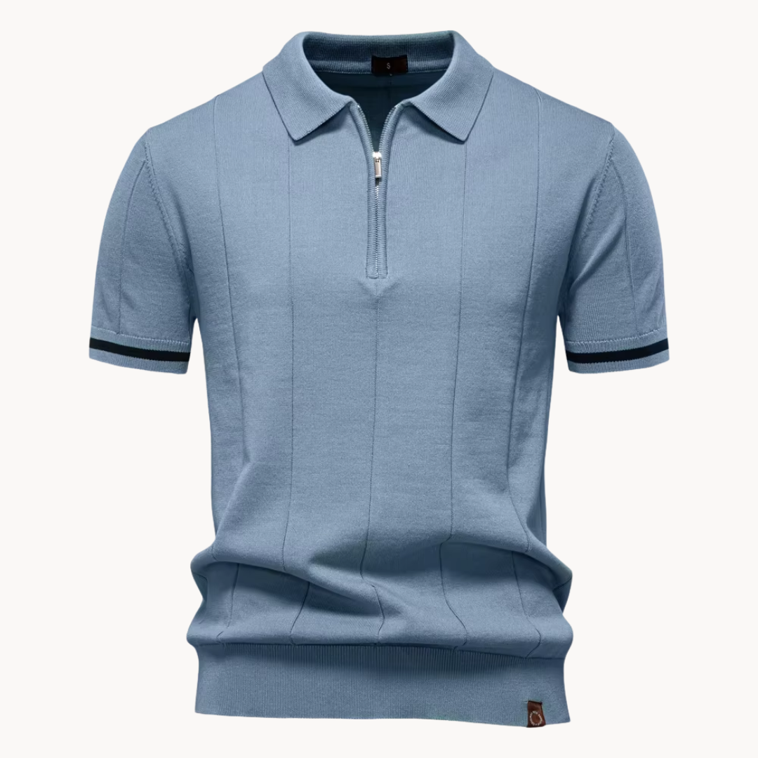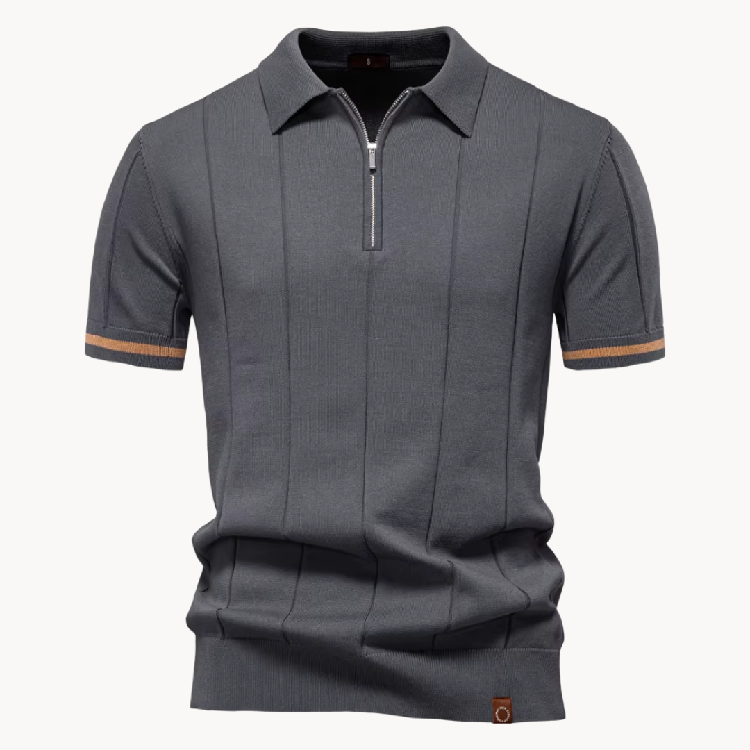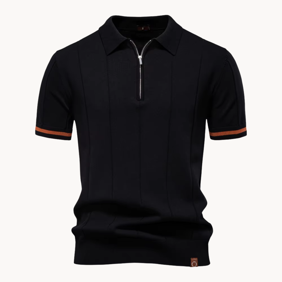 The Callahan Knit Zip Polo strikes the perfect balance between refinement and ease. Designed with a modern zip collar and subtle vertical texture, it offers a tailored yet relaxed silhouette that transitions effortlessly from workdays to weekend plans. The contrast trim at the sleeves adds a touch of understated character, while the lightweight knit construction ensures lasting comfort and structure. Polished and versatile, it’s a timeless essential that pairs just as well with chinos as it does with denim.