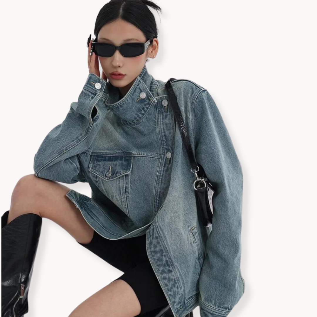 Metro Mod Turtleneck Denim Jacket