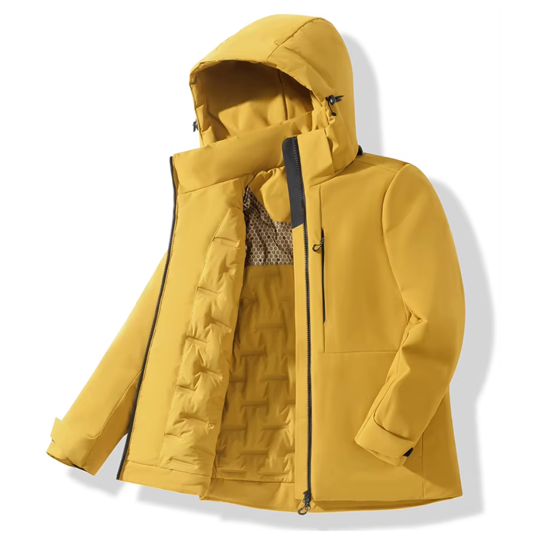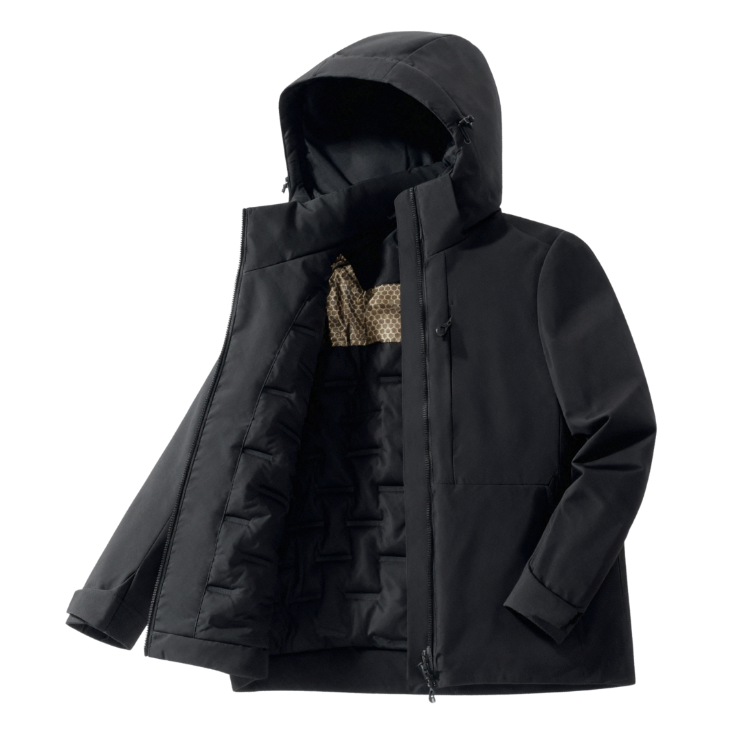 The Northcrest All-Weather Jacket is built for the days when conditions shift without warning. Its waterproof shell keeps out rain and wind, while the insulated interior features a graphene-lined section engineered to lock in body heat and maintain steady warmth. A detachable hood offers versatility from storm-ready to streamlined, giving the jacket a refined look no matter how you wear it. Finished with secure pockets and a clean front zip, it’s a dependable layer made to carry you comfortably through the season.