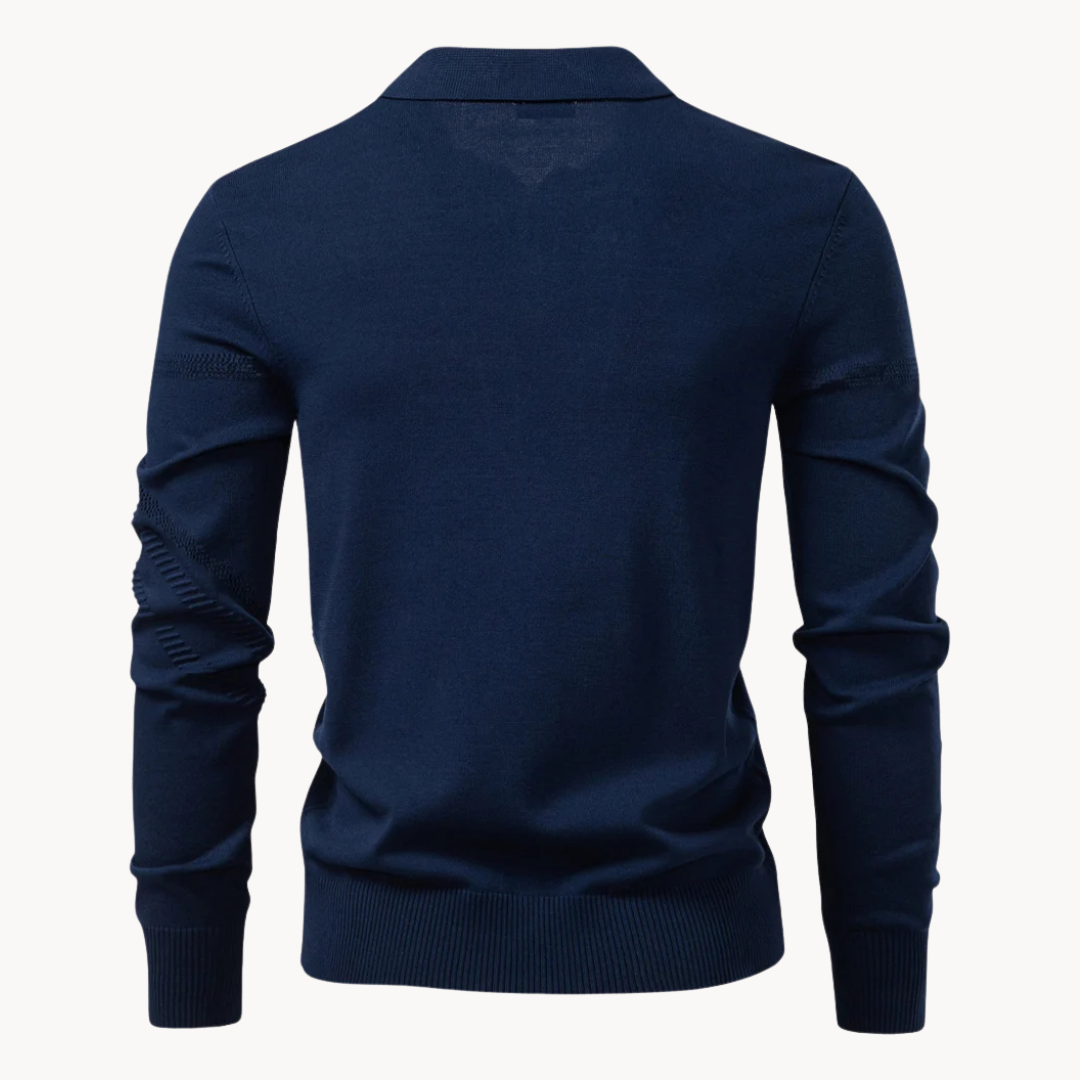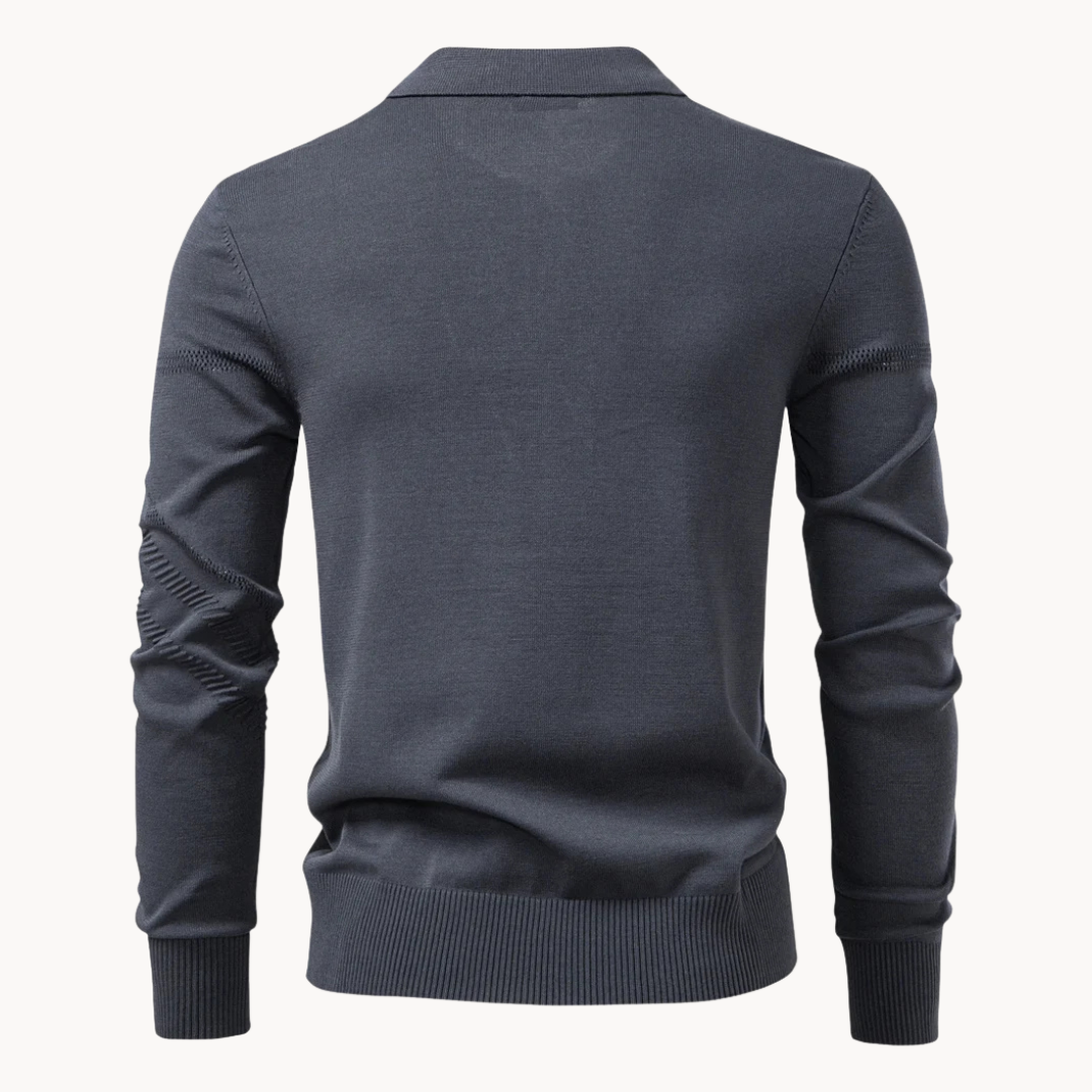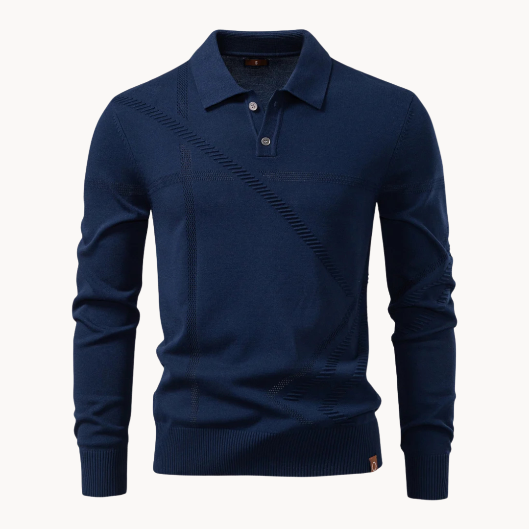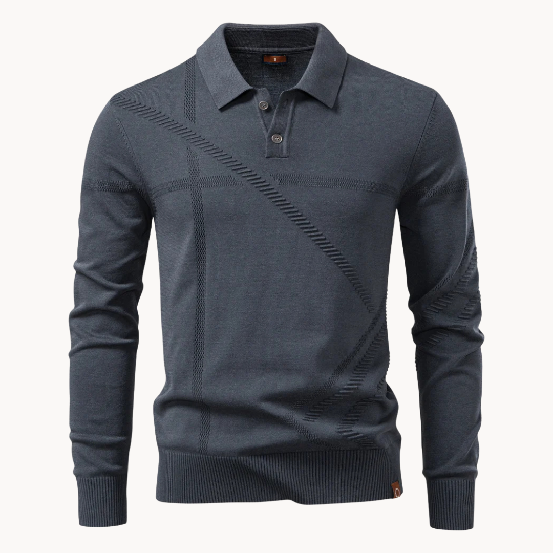 A modern knit polo designed with a refined, understated look. The Renford features a smooth, tailored fit with subtle textured detailing that adds depth without feeling busy. The lightweight knit offers an easy drape and all-day comfort, making it a versatile piece that works just as well under a jacket as it does on its own. Clean lines, a structured collar, and a polished two-button placket give it a sharp, elevated finish.